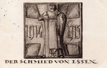 In Essen, der „Kanonenstadt“ und „Waffenschmiede des Reiches“, war die Kriegspropaganda am Beginn des 20. Jahrhunderts ein wesentlicher Bestandteil des Stadtmarketings. Postkarten der Krupp-Fabrik und ihrer Produkte, allen voran der „Dicken Berta“, waren beliebte Souvenirs. Nach Kriegsausbruch 1914 engagierten sich Essener Kulturschaffende, etwa die Dichterin Maria Weinand, der Grafiker Karl Hapke oder der Architekt Prof. Edmund Körner für den „Kriegsliebesdienst“, mit dem vordergründig Soldaten und Hinterbliebene von Kriegsopfern unterstützt werden sollten. Von Essen ging dabei eine reichsweite Initiative zur Spendensammlung an Schulen aus.